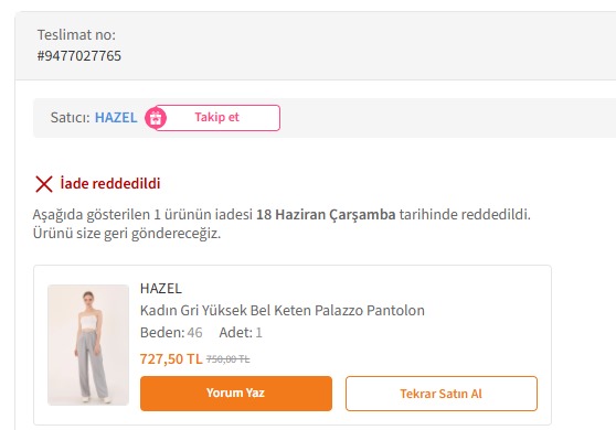 Trendyol üzerinden millete yırtık şeyleri satıyorlar sonra iade için ulaşamazsınız.