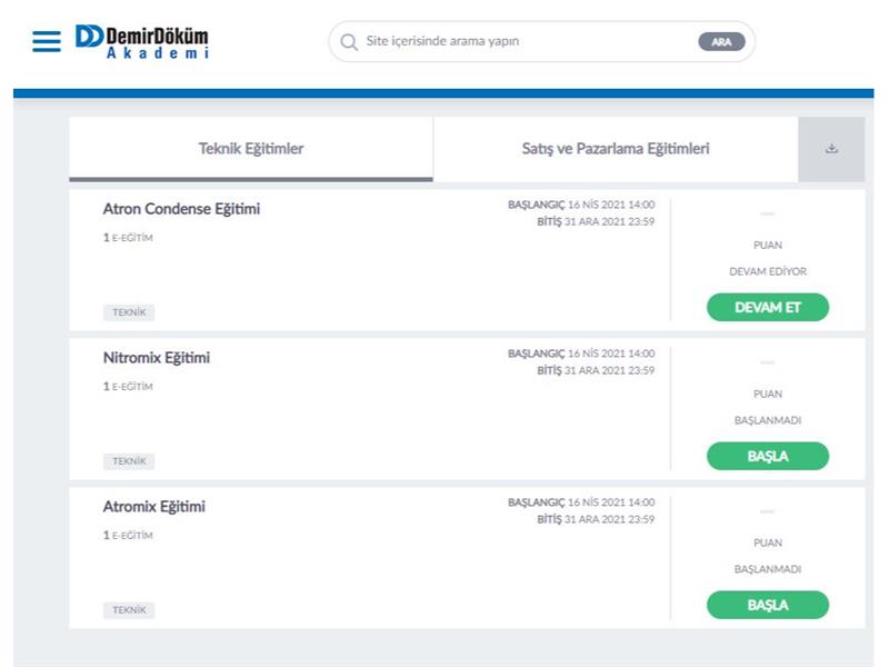 Önceki yıllarda DemirDöküm Akademi çatısı altında fiziken verilen eğitimlerin online ortama taşınmasıyla satış, pazarlama, müşteri deneyimi ve beraberinde memnuniyetinde önemli bir kazanım elde edildiğini belirten Pazarlamadan Sorumlu Genel Müdür Yardımcısı Ufuk Atan, "Türkiye genelinde yüzlerce iş ortağımızdan aldığımız talep ile DemirDöküm Akademi'nin online eğitimlerini geliştirmeye, yeni başlıklar ve eğitim içerikleri katmaya devam ediyoruz. Teknik ürün eğitimlerinin de dijital ortama taşınmasıyla birlikte daha fazla iş ortağımıza eğitim için zaman ve mekandan bağımsız ulaşacak, hayatlarını kolaylaştıracağız. İster cep telefonları ya da tabletleri üzerinden isterlerse masa başında tek tuşla bütün teknik eğitimlere erişimi açtık. 3 bin 500 iş ortağımıza ulaşmayı hedeflediğimiz online teknik eğitim platformumuz üzerinden şu an 16 farklı eğitim içeriğine ulaşılabiliyor" dedi.