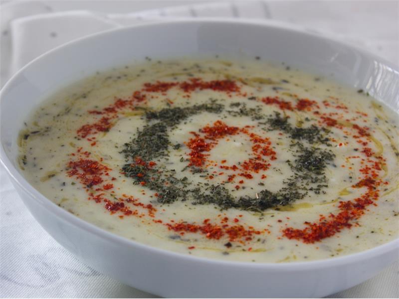 Taze soğanlar zeytinyağında pişirilir. Kahverengileşmeye başlayınca taze kekik eklenir. Kokusu çıkana kadar beklenir. Kabak, tuz, karabiber eklenip kabaklar yumuşayana kadar pişirilir. 2 bardak su eklenip 20 dakika kaynatılır. Oda ısısına gelene kadar bekletilir. Sonra buzdolabında soğutulur. Bu sırada yoğurt, fesleğen ve limon suyu püre haline getirilir. Karışım çorbanın içine karıştırılır. Zeytinyağı ve fesleğenle birlikte soğuk servis edilir.