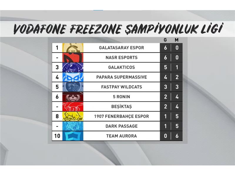 İlk haftadan bu yana kayıpsız ilerleyişini sürdüren Galatasaray Espor ve Nasr Esports üçüncü hafta geride kalırken altışar galibiyet ile zirveyi paylaşmaya devam ediyor. Haftanın ilk gününe Galatasaray Espor, Papara SuperMassive karşısında aldığı galibiyet ile başladı. Yalnızca iki skor verdiği karşılaşmada Galatasaray Espor, rakibine bu mevsimdeki ilk mağlubiyetini yaşattı. Haftanın ikinci gününde ise puan tablosunun en alt sırasındaki Team Aurora’yı mağlup etmeyi başardı. Nasr Esports, haftanın ilk mücadelesini 1907 Fenerbahçe Espor karşısında verdi. 36 dakikalık uzun bir mücadelenin ardından galibiyete ulaşan taraf Nasr oldu. Haftanın ikinci gününde ise rakibi Papara SuperMassive ile karşı karşıya geldiği karşılaşmadan galip ayrılarak kayıpsız ilerleyişini sürdürdü.