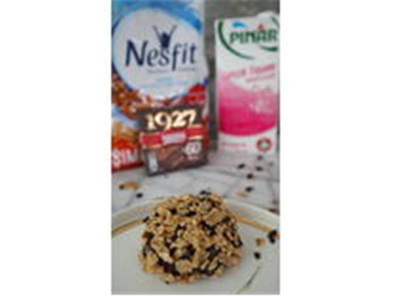 Tarifinizi hazırlarken derin karıştırma kabına tam buğday ununu alın ve pekmezi ilave edin. Yavaş bir şekilde Pınar Light Süt’ü ekleyerek hamur kıvamına gelene kadar karıştırın. Elde ettiğiniz hamurdan, cevizden biraz küçük boyutlarda toplar oluşturun ve bu topları bir merdane yardımı ile yuvarlak olacak şekilde açın. Açtığınız hamurun içerisine fıstık ezmesi koyun ve akmayacak şekilde kapatarak elinizle top şekli verin. Sonrasında Nestlé Bitter Çikolatayı bir kapta benmari usulü eritin. NESFIT Sade Gevrek’i rondoya alın ve taneleri iri kalacak şekilde 1 veya 2 kez çekin, ardından derin bir kaba alın. Hazırladığınız topları, önce bir kapta erittiğiniz çikolataya atın, sonrasında çatal yardımı ile çıkarıp rondodan geçirdiğiniz gevreklere bulayın ve dışının tamamen kaplanmasını sağlayın. Hazırladığınız atıştırmalık kurabiyelerinizi yağlı kağıt serili bir tepsiye alın ve 10 dakika çikolatanın gevrek ile beraber donmasını bekleyin. Donduktan sonra benzersiz lezzeti afiyetle yiyebilirsiniz!
