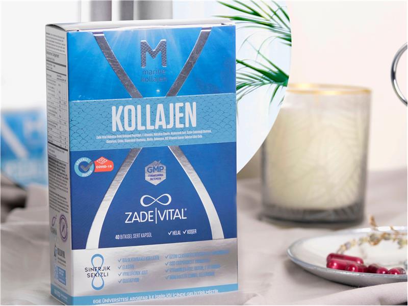 Canlı ve ışıltılı cilt yapısının korunmasında rol oynayan Zade Vital Marine Kollajen kapsül formdaki besin desteği, açık denizlerden elde edilen balık kollajeninden oluşuyor. İçeriğindeki sinerjik sekizli olarak adlandırılan; elastin, hyalüronik asit, üzüm çekirdeği ekstresi, kavundan elde edilen süperoksit dismutaz, çinko, biotin ve C vitamininin etkisiyle güzelliğinizi destekliyor.