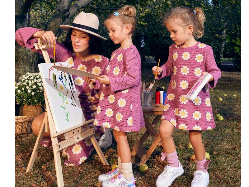 Anne ve kız çocuklarının birlikte giyinebilecekleri özel kombinler sunan koleksiyonda, klasik tasarımlar modern bir yaklaşımla buluşuyor. Anneler ve kızları için hazırlanan koleksiyon, çiçek motiflerinin öne çıktığı modelleri, büzgülü volan detayları ve kıvrımlı kesimleri ile öne çıkıyor.