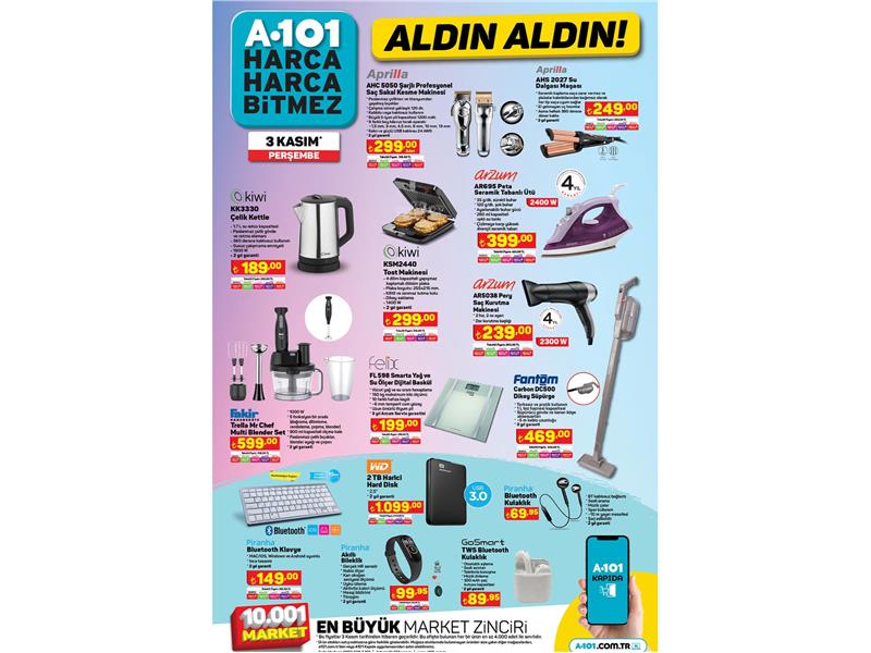 ÇEŞİTLİ KÜÇÜK EV ALETLERİ 3 KASIM İTİBARIYLA TÜM A101 MARKETLERİNDE!