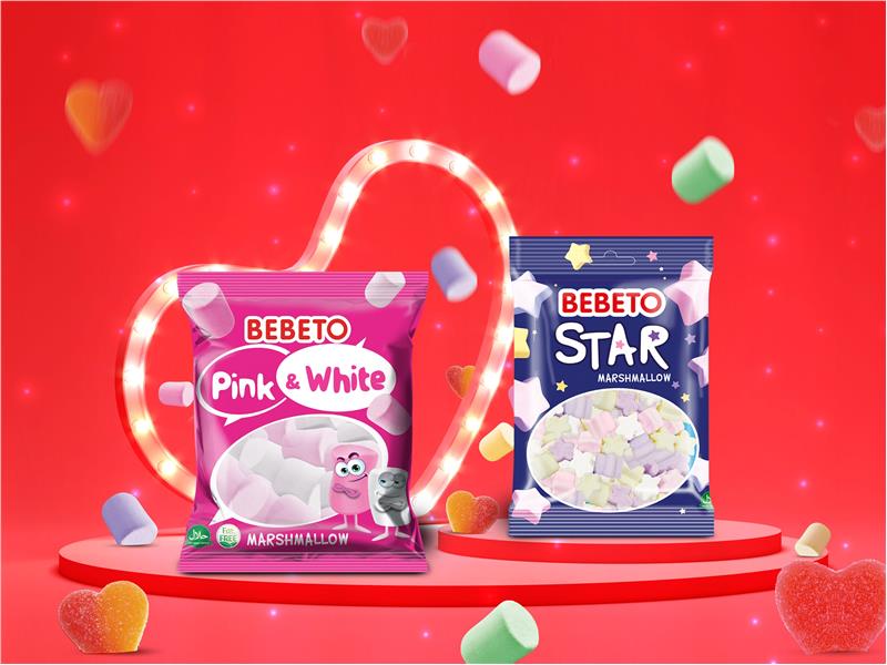 Sevgililer Günü kutlamalarına romantik ve tatlı bir dokunuş yapan Bebeto, kalp formundaki ve doğal kırmızı meyve aromalarıyla tatlandırılan yumuşak şekerleriyle bu özel günün renklerine yakışan bir lezzet oluyor. Rengarenk ve farklı şekillere sahip Bebeto şekerlemeler kutlamalara neşe katarken, yumuşacık marshmallowlar da Sevgililer Günü sunumlarınızda yerini alıyor.