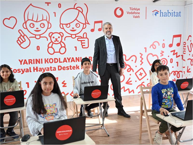 Afet bölgesindeki çocukların eğitimine katkı sağlamak üzere Türkiye Vodafone Vakfı ve Habitat Derneği işbirliğiyle başlatılan “Yarını Kodlayanlar Sosyal Hayata Destek” projesi kapsamında ilk konteyner teknoloji sınıfı Adıyaman’da açıldı. Konteyner sınıfta 7-14 yaş arası çocuklar için müzik ve masal atölyeleri, kodlama eğitimleri ve çeşitli sosyal etkinlikler düzenlenecek; oyun terapisiyle psikososyal destek sağlanacak.