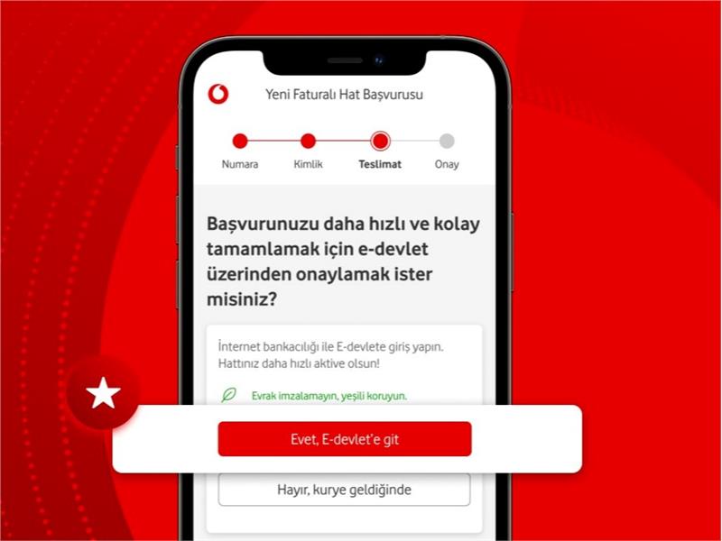 Vodafone müşterileri önce vodafone.com.tr üzerinden istedikleri tarifeyi seçiyor ve kişisel bilgilerini bırakıyor. Kimlik ve başvuru onay yöntemi olarak e-Devlet Kapısı’nı seçiyor. İnternet bankacılığı şifresiyle e-Devlet Kapısı’na giriş yaparak başvurusunu onaylıyor. SIM kartını teslim aldıktan sonra Vodafone Yanımda uygulamasına giriş yaparak sözleşmelerini onaylayıp SIM kart aktivasyonunu gerçekleştiriyor. SIM kart aktivasyonu sonrasında ise yeni hat başvurusu yaptıysa hemen, numara taşıma başvurusu yaptıysa 2-3 gün içinde Vodafone’lu oluyor. Nisan ayından bu yana “SIM kartım kapıma gelsin” seçeneğini seçen her 3 müşteriden 2’si e-Devlet ile onaylama seçeneğini seçti. e-Devlet üzerinden başvurularını onaylayan müşterilerin %96’sı Vodafone Yanımda uygulamasında aktivasyonlarını tamamladı.