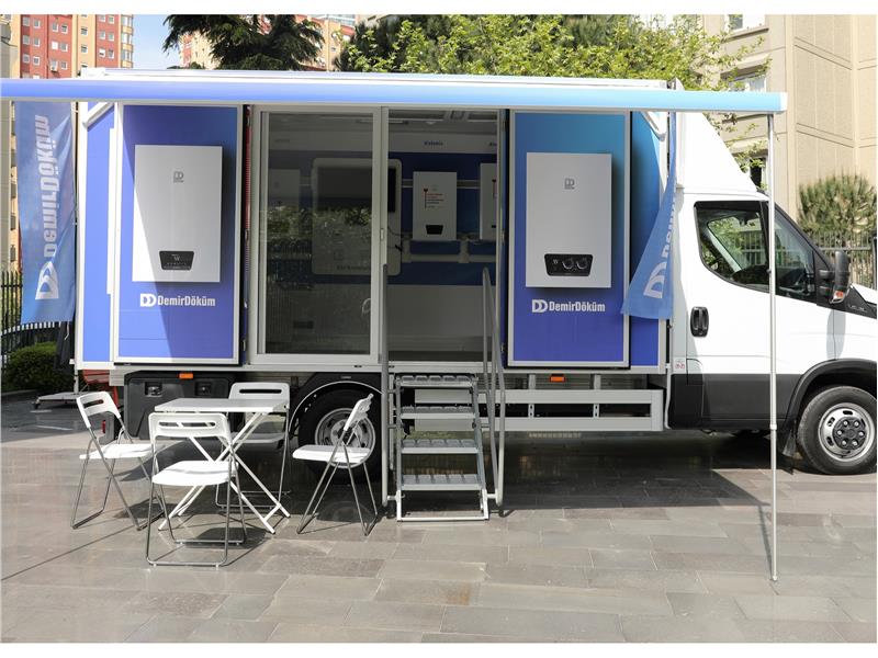 DemirDöküm’ün yeni infomobil araçlarının tasarımında farklı birimden birçok kişinin görev aldığını belirten Satıştan Sorumlu Genel Müdür Yardımcısı Erol Kayaoğlu, “Gerçekleştireceğimiz roadshow kapsamında aracımızı ziyaret eden müşterilerimizin kendilerini sıcak yuvalarında hissedebilmesi için tüm detayları en ince ayrıntısına kadar düşündük. Özenle tasarladığımız yeni araçlarımızla yüksek performans, düşük enerji tüketimi ve kolay kullanıma sahip ürünlerimizi, satış sonrası hizmetlerimizi, sektördeki yenilikçi teknolojileri, mevzuatları, aile bütçesine destek olacak bilgileri paylaşacağız. Müşterilerimiz hem ürün gamımıza yeni katılan ürünlerimizi yakından inceleme fırsatı bulacak hem de kombiden ısı pompasına, panel radyatörden şofbene, termosifondan yoğuşmalı kaskad kazana, klimadan VRF sistemleri, oda termostatı ve elektrikli su ısıtıcılarına kadar geniş ürün gamımız hakkında bilgi alabilecek. Infomobil faaliyetlerimizdeki temel hedefimiz; hem ürün ve hizmetlerimizi tanıtmak, hem de kullanıcılarımızı dinlemek” dedi.
