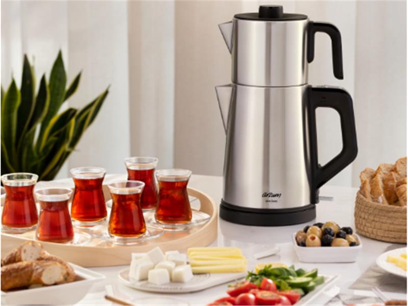 Paslanmaz çelik su haznesi ve bir litrelik demliği ile tek seferde daha fazla çay demleme imkanı sunan Arzum Deminde Çay Makinesi, en kalabalık yaz sohbetlerinin vazgeçilmezi olacak. Çayın lezzetini bozmayan paslanmaz çelik çay filtresi ile süzgeç ihtiyacını ortadan kaldırır, kullanım ve temizleme kolaylığını üst sıraya taşır. Susuz çalışmayı önleyen emniyet sistemi ile gözünüz hiçbir zaman arkada kalmaz. 360° derece dönebilen yapısıyla kullanıcısına sunum kolaylığı sağlayarak çay keyfine pratiklik kazandırır. Su ısıtıcısı olarak da kullanılabilen çay makinesi, fonksiyonelliğiyle de ön plana çıkar. Kablo saklama haznesi ile kullanım sonrası şıklığını korur. Sade ve şık tasarımı ile mutfakların gözdesine dönüşür.