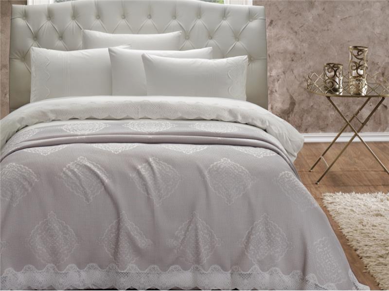Özgün tasarımları, zengin desen ve renk seçenekleriyle ev tekstilinde de farkını ortaya koyan Yataş Bedding, Odessa Pikeli Çeyiz Seti ile dantelin benzersiz zarafetini yatak odalarını taşıyor.