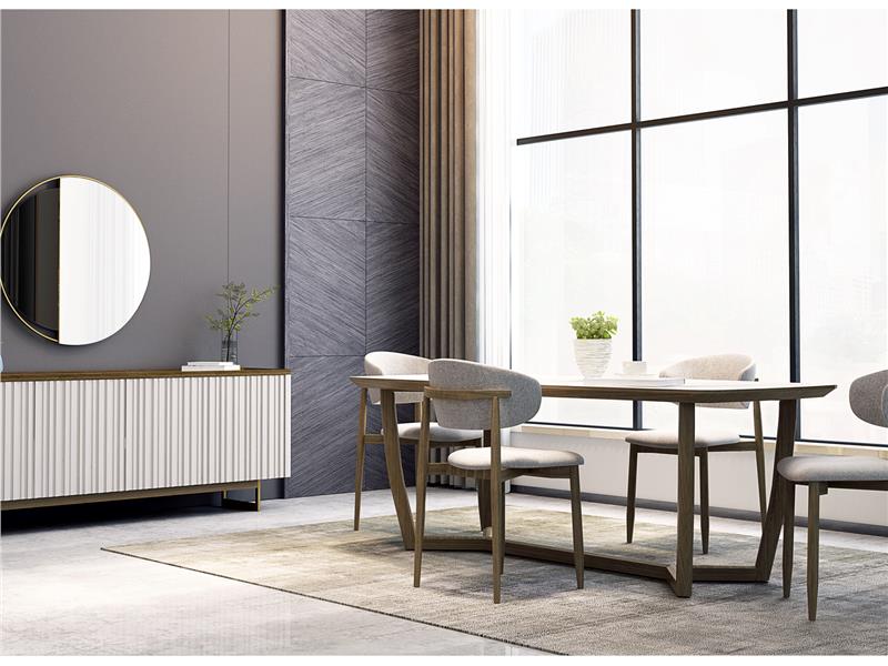 Yeni bir soluk arayanların gözdesi olacak Lionte Yemek Odası, fonksiyonel detayları ve şık tasarımıyla özenli şekilde hazırlanıyor. Konsol, masa, sandalye ve aynadan oluşan takım, özgün renk kombinasyonuyla ön plana çıkıyor. Zengin depolama alanına sahip konsol ile yemek odaları daha kullanışlı hale geliyor.
