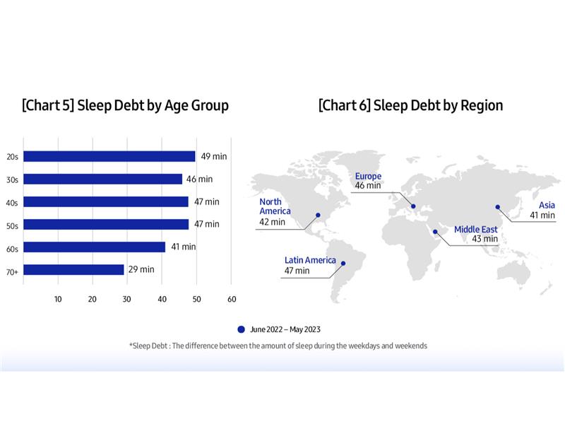 Uyku yoksunluğu, en fazla gençler arasında görülüyor. 20'li yaşlarda olanlar 70'li yaşlarda olanların neredeyse iki katı uyku yoksunluğu çekiyor. Bu değer, gençlerde 49, yaşlılarda 29 dakika olarak ölçülüyor. Bölgelere bakıldığında, Asya, 41 dakika ile en kısa, Latin Amerika ise 47 dakika ile en uzun uyku süresine sahip. Dünya genelinde, insanlar hafta sonları ortalama 44 dakika daha fazla uyuyor.