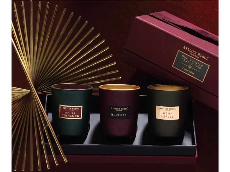 Atelier Rebul, en beğenilen 3 ikonik kokusunu içeren "Mini Trio Candles" kitini, lüks bir hediye kutusuyla birlikte sunuyor. İçerisinde; Hemp Leaves & Apple Cinnamon & Bereket kokularının mini boy mumlarını barındıran bu özel set, evinizi ve yeni yıl sofranızı farklı duyularla doldurmak için tasarlandı. Özenle hazırlanan mini mum serileri ile sevdiklerinize lüks hediyeler sunabiliyorsunuz. Kısıtlı süreyle satışa sunulan bu sürpriz seti kaçırmayın.