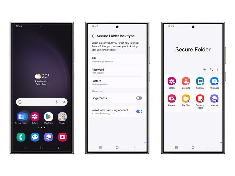Samsung Knox, kullanıcılarını yalnızca korumakla kalmıyor, aynı zamanda neyi güvence altına almak istedikleri konusunda onlara seçenekler sunan güvenlik ve gizlilik katmanları da sağlıyor. En gizli kişisel bilgilerini ayrı yerde ve güvende tutmak isteyenlere Güvenli Klasör seçeneği sunuluyor. Bu seçenek, telefonunuzun normal depolama alanından erişilememesi için verilerinizi kilit altında tutan bir depo görevi görüyor. Takvim programlarınız ve rehber bilgilerinizin yanı sıra notlar, fotoğraflar, videolar, dosyalar ve hatta uygulamalar gibi en özel verilerinizi burada saklayabilirsiniz. Hatta, uygulamalarınızı ve verilerinizi, bir sonraki açışınıza kadar daha da gizli tutmak için Güvenli Klasörü şifreleyebilirsiniz.