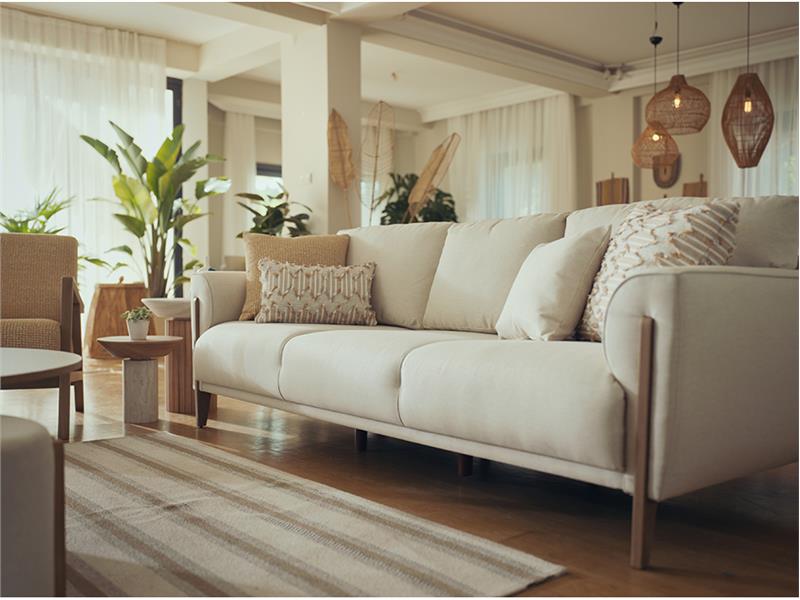 Doğadan ilham alan renklerle kombinlenen ahşap mobilyalar, Akdeniz stilini modern bir görünümle tamamlıyor. Koleksiyona özel hazırlanan ahşap ayak çalışması yaşam alanına sıcak ve samimi bir dokunuş sağlıyor. Panel serisiyle uyumlu ahşap detaylara sahip koltuk takımı ve ahşap kollu berjer tasarımı sıcak ve samimi bir ortam yaratarak salon dekorasyonunu büyük ölçüde tamamlamanızı sağlıyor. Yüksek ayak yapısı ile ev temizliğinde avantaj sağlayan koltuk takımı, kolay temizlenebilen kumaş özelliği sayesinde mobilyalarınızda uzun ömürlü kullanım imkanı da sunuyor.