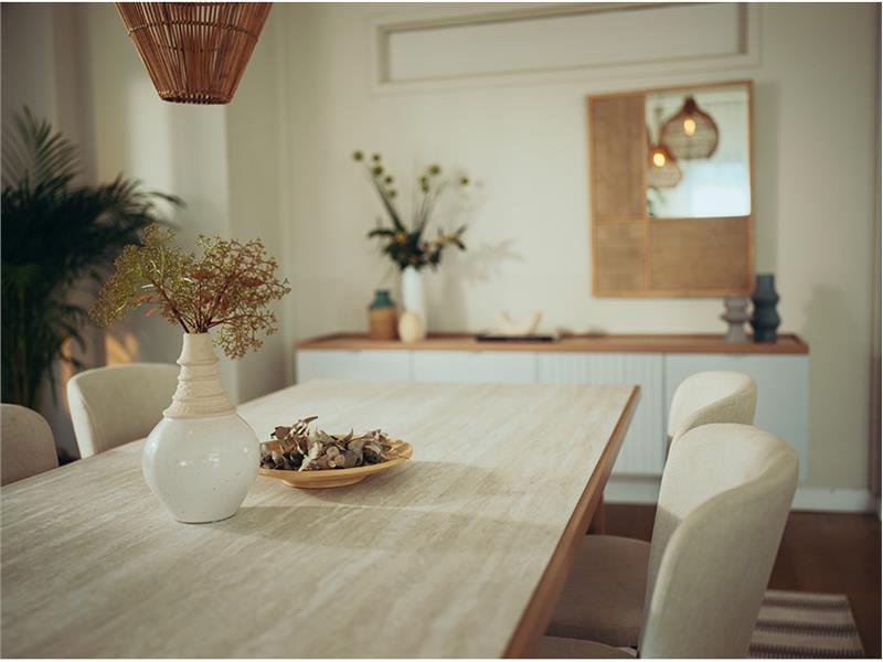 Gün içerisinde en çok vakit geçirdiğimiz ve sevdiklerimizle keyifli anlar paylaştığımız evlerimizin her köşesine doğal ve sade bir görünüm sağlamak için hazırlanan Puerta Yemek Odası takımı traverten dokusuna sahip yemek masası ile stili tamamlarken, sabit ve açılır olmak üzere iki masa alternatifi de sunuyor. Opsiyonel bir kullanım sunan yemek odası takımı, daha fazla alan ve esneklik sağlıyor. Evinizin ölçüsüne uygun olarak seçebileceğiniz masa alternatiflerini iki farklı sandalye tasarımı ile eşleştirebilirsiniz.
