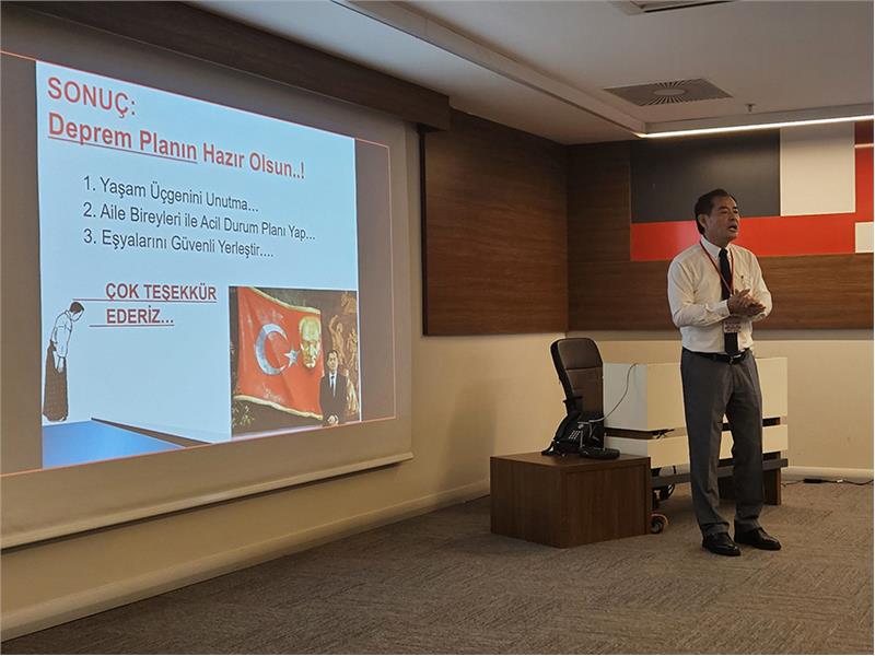 Mitsubishi Electric Türkiye, çalışanlarının eğitim ve gelişim ihtiyaçlarını karşılamak için hayata geçirdiği Mitsubishi Electric Türkiye Akademi (METR Akademi) çatısı altında akademik ve teknik içeriklerin yanı sıra, iş sağlığı ve güvenliği çalışmaları kapsamında da yaşanması olası afetlerle ilgili eğitimlerini sürdürüyor. Geçtiğimiz günlerde, uzun yıllardır Türkiye’deki depremler üzerinde de çalışan yüksek inşaat mühendisi ve yüksek mimar olan Yoshinori Moriwaki "Depreme Karşı Alınacak Önlemler" konulu seminerde çalışanlarla bir araya geldi. Deprem uzmanı Moriwaki, Türkiye’de yaşanmış depremlerin çok yıkıcı sonuçlarının olduğuna ve en büyük eksikliklerden birinin de deprem eğitimlerine gereken önemin verilmediğine dikkat çekti.