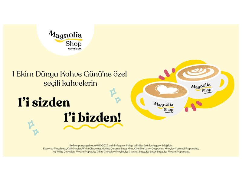 Magnolia Shop, 1 Ekim Dünya Kahve Günü’nde seçili kahvelerde “1’i Sizden, 1’i Bizden!” kampanyasıyla kahve keyfini ikiye katlıyor.