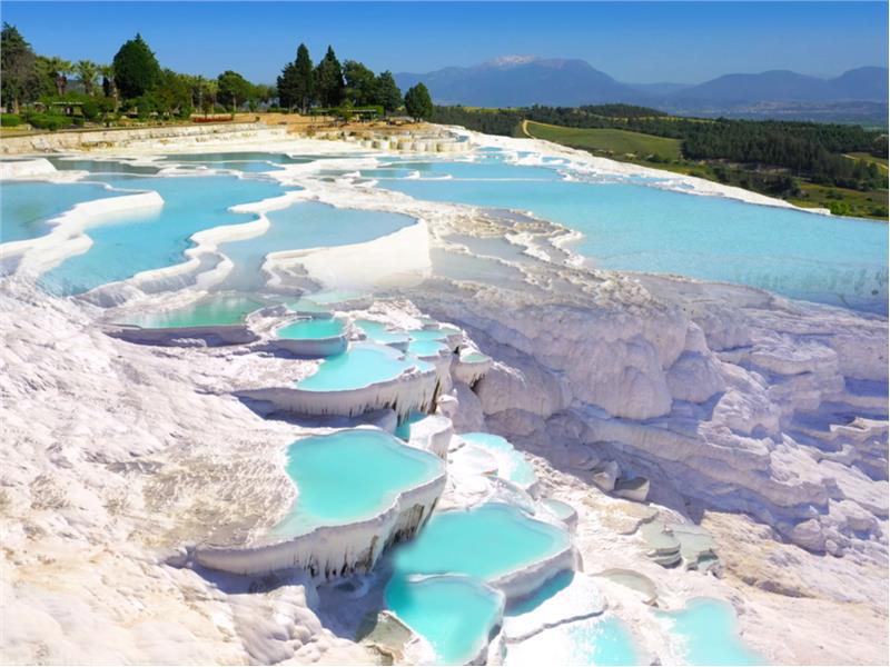 Türkiye tanıtım görsellerinin başında gelen Pamukkale Travertenleri şifalı suyu ile sadece ülkemizden değil dünyanın dört bir yanından turistleri ağırlıyor.