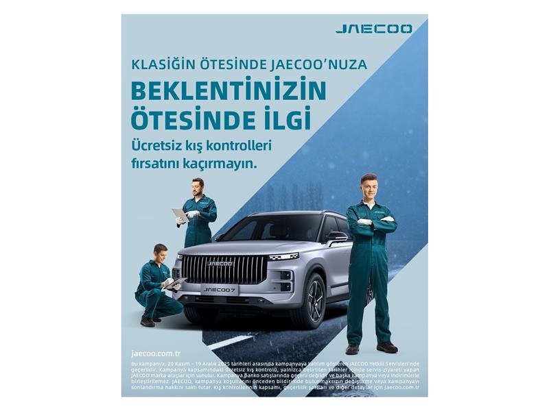 JAECOO, Türkiye pazarına girdiği günden bu yana kullanıcıların dikkatini çekmeye ve beğenisini kazanmaya devam ediyor. JAECOO, teknolojik estetiği güçlü ürün performansıyla birleştirerek sadece özgün bir marka kimliği oluşturmakla kalmıyor, aynı zamanda kullanıcılarına güvenli ve konforlu bir seyahat deneyimi sağlayan hizmetler sunuyor. JAECOO, kış şartlarının başlamasıyla birlikte 19 Aralık tarihine kadar sürecek özel bir kış kontrolleri kampanyasını devreye aldı.