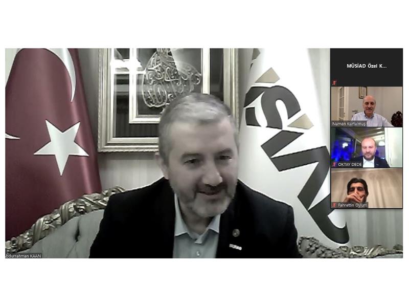 Toplantıda ilk olarak söz alan MÜSİAD Genel Başkanı Abdurrahman Kaan, MÜSİAD’ın Koranavirüs (Covid-19) sürecinde gerçekleştirdiği çalışmalara ilişkin detaylı bilgi verdi.