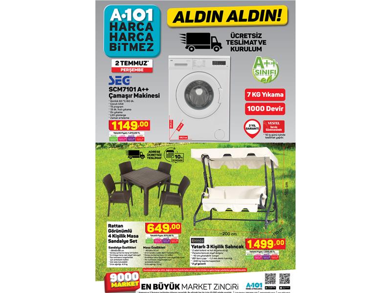 Çamaşır yıkamayı hızlı ve kolay hale getiren SEG SCM7101 A++ Çamaşır Makinesi, 15 farklı yıkama programı, 7 kg yıkama kapasitesi ve daha birçok özelliği ile müşterilerle buluşuyor. 2 yıl Vestel garantisinin yanında ücretsiz teslimat ve kurulum hizmeti bulunan ürün 1.149 TL fiyatı ile A101 marketlerinde ve a101.com.tr’de satışta.