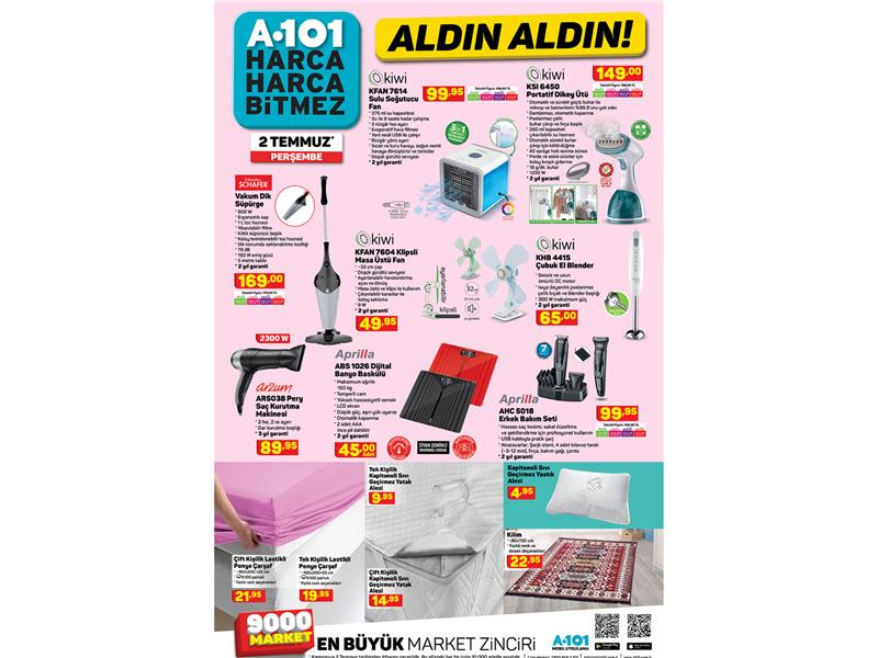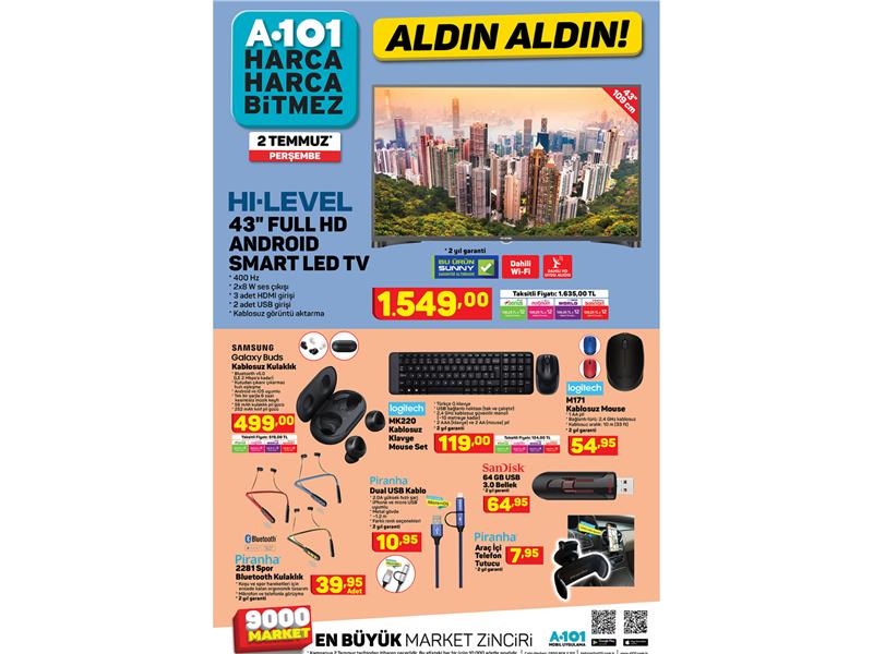 9.000 marketi ile Türkiye’nin en yaygın perakende zinciri olan A101 marketlerinde bu hafta televizyondan beyaz eşyaya, kulaklıktan bilgisayar aparatlarına kadar pek çok elektronik ürün ile çeşitli küçük mutfak aletleri kaçırılmayacak fiyatlarla tüketicilere sunuluyor.