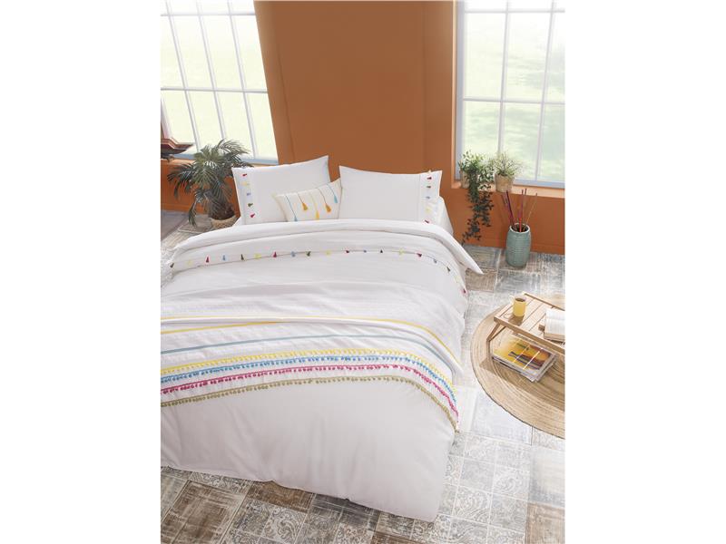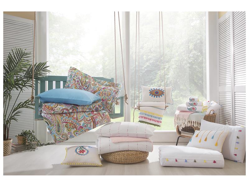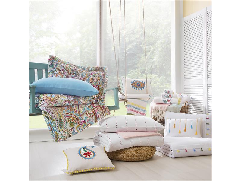 Tek kişilik, çift kişilik ve çift XL seçenekleri bulunan Verna Saten Nevresim Takımı, canlı renk ve desenleriyle yatak odalarının şıklığını tamamlıyor. Yumuşak ve parlak %100 pamuk kumaşıyla dikkat çeken Verna Saten Nevresim Takımı’nın standart yastığının yanı sıra volanlı yastığı da bulunuyor. Nona Püsküllü Nevresim Takımı ise %100 pamuktan oluşan dayanıklı ranforce kumaş kalitesini nervür ve püskül detaylarıyla buluşturarak yatak odalarına özel bir dokunuş yapıyor. Beyaz ve pudra pembe rengin soft uyumunu yansıtan Nora Ranforce Nevresim Takımı, yumuşak tuşesinin sağladığı rahatlığı şık tasarımıyla buluşturuyor. Nona Püsküllü Nevresim Takımı ve Nora Ranforce Nevresim Takımı’nın tek kişilik, tek XL, çift kişilik ve çift XL seçenekleri bulunuyor. Skyway serisindeki nevresim takımlarıyla uyum sağlayan Hope Yatak Örtüsü ise yaza özel renkleriyle yatak odalarında modern ve canlı bir etki yaratıyor.