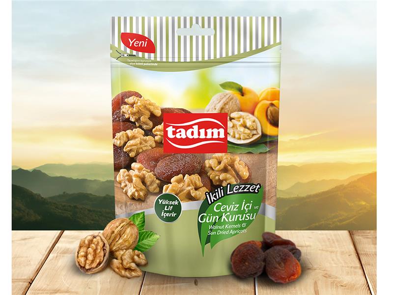 Türkiye’nin ilk ve lider paketli kuruyemiş markası Tadım, sağlığı tatlıya bağlayan yeni ürünü ‘Ceviz İçi & Gün Kurusu’nu aynı pakette buluşturarak raflara çıkardı. Yüksek lif ve demir kaynağı olan sağlıklı atıştırmalıkların en sevilenleri arasında yer alan ceviz içi ve gün kurusu, tatlı ihtiyacını en lezzetli şekilde karşılıyor.