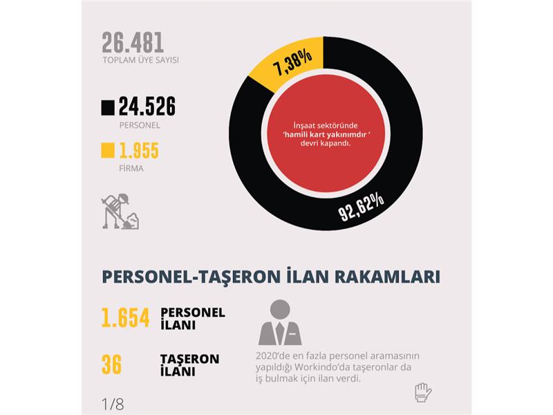 Yapı-inşaat sektörüne özel online kariyer ve hizmet platformu Workindo.com, 2020 yılı site verileri üzerinden inşaat sektörünün kariyer ve online pazaryeri infografiğini yayınladı.